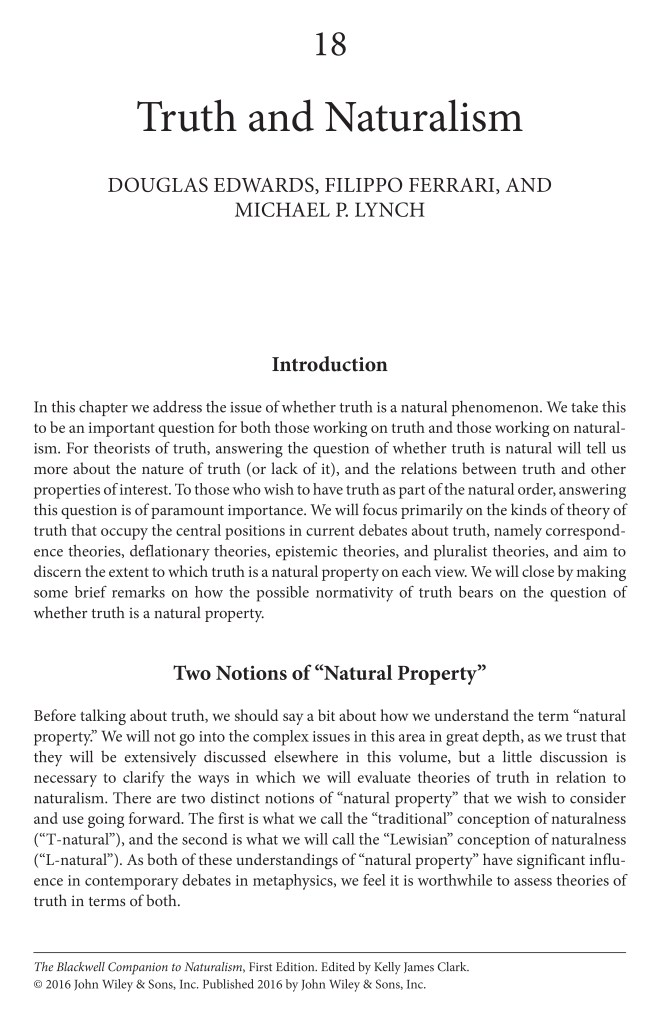Truth and Naturalism (with D. Edwards & M. Lynch) <paper>, <draft>