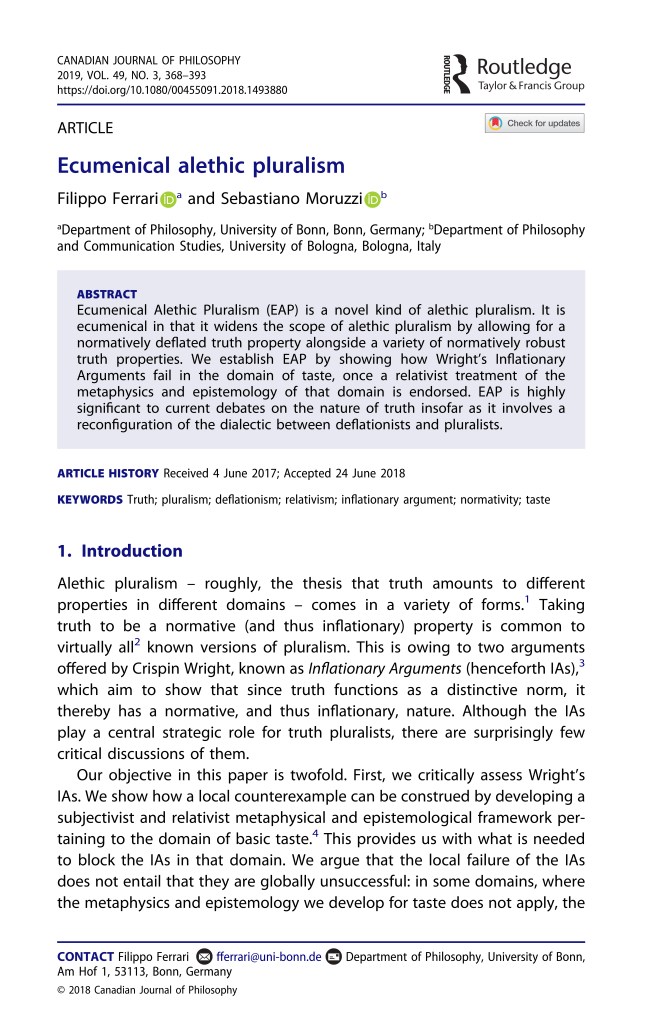 Ecumenical Alethic Pluralism (with S. Moruzzi) <paper>, <draft>