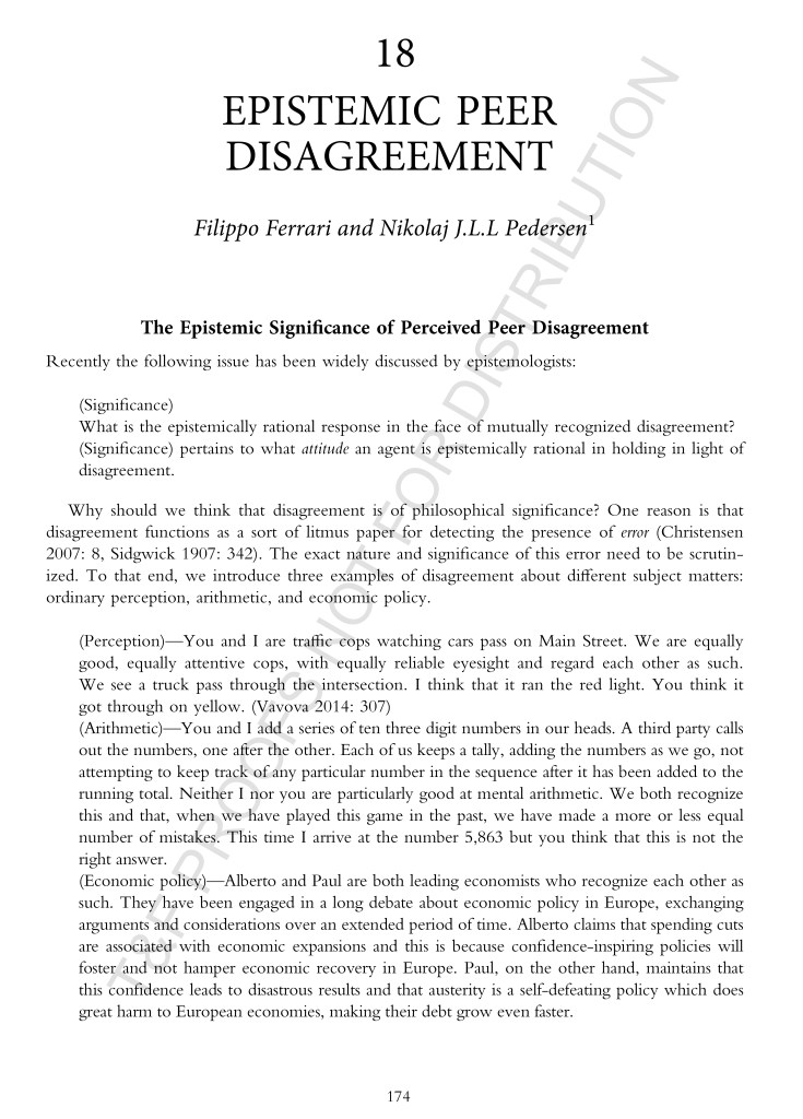 Epistemic peer disagreement (with N.J.L.L. Pedersen) <paper>,<draft>