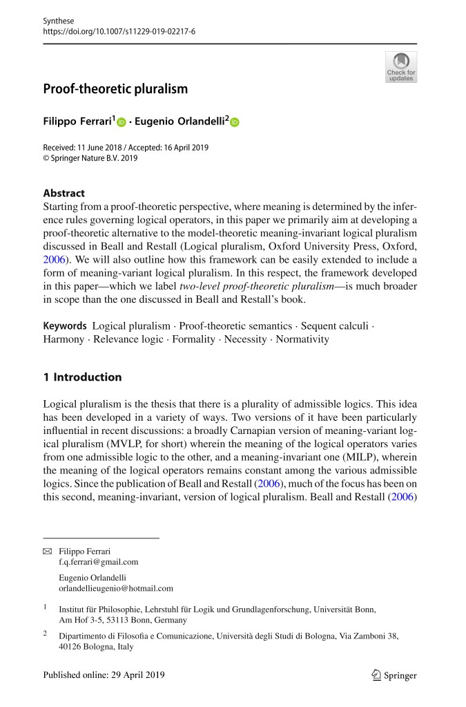 Proof-theoretic pluralism (with E. Orlandelli) <paper>