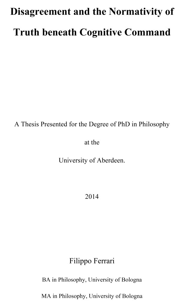 Disagreement and the Normativity of Truth beneath Cognitive Command <thesis>