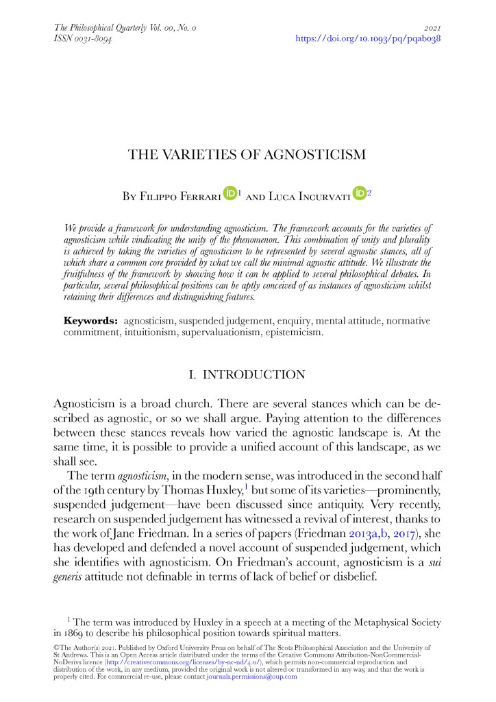 The Varieties of Agnosticism (with L. Incurvati) <paper>